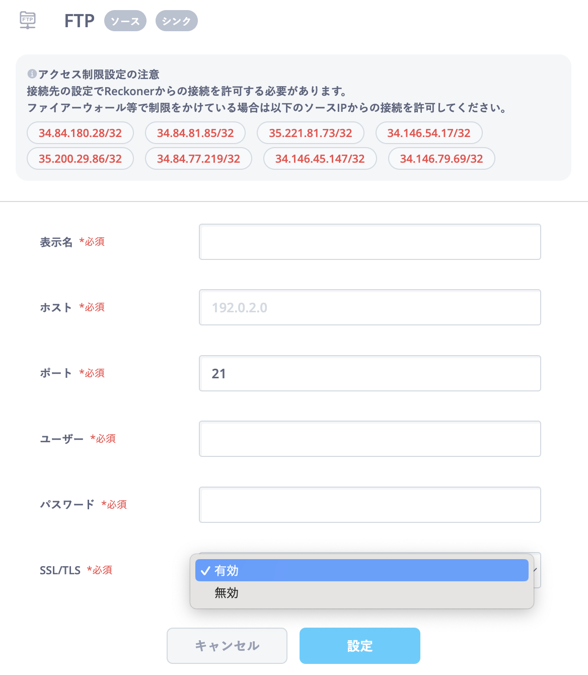 接続情報でFTPを選択し、SSL/TLSを有効で登録するとご利用いただけます。