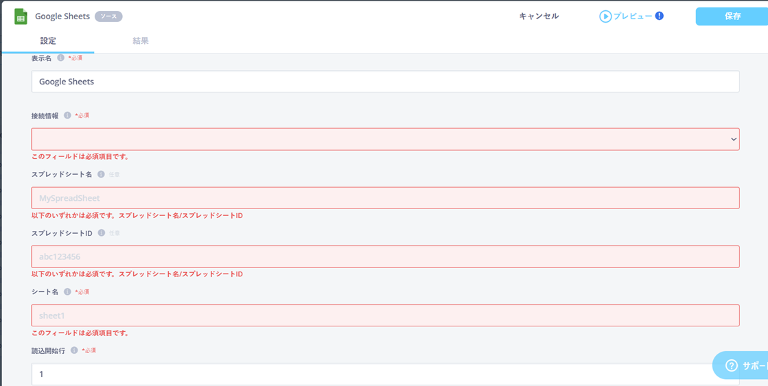 2.転送元Google Sheetsへ必要情報を設定する