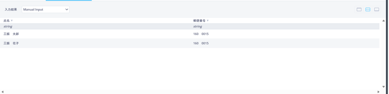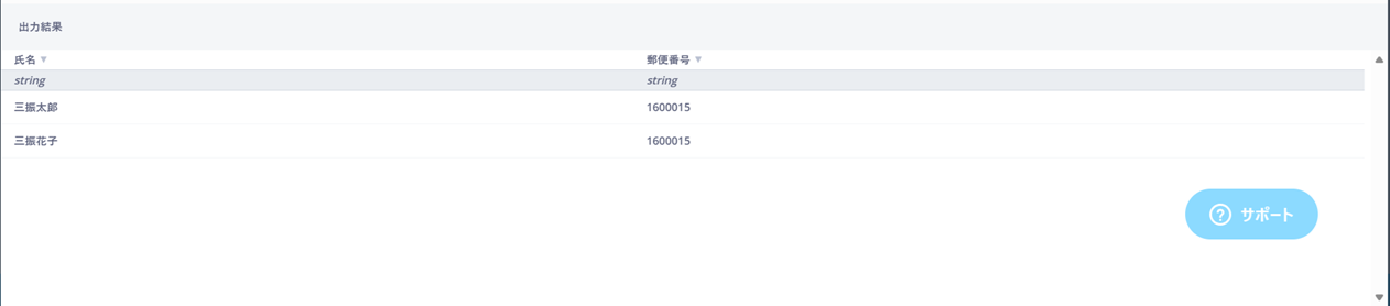 「置換」を使って「氏名」の空白(全角スペース)、「郵便番号」の空白(半角スペース)を除外します。