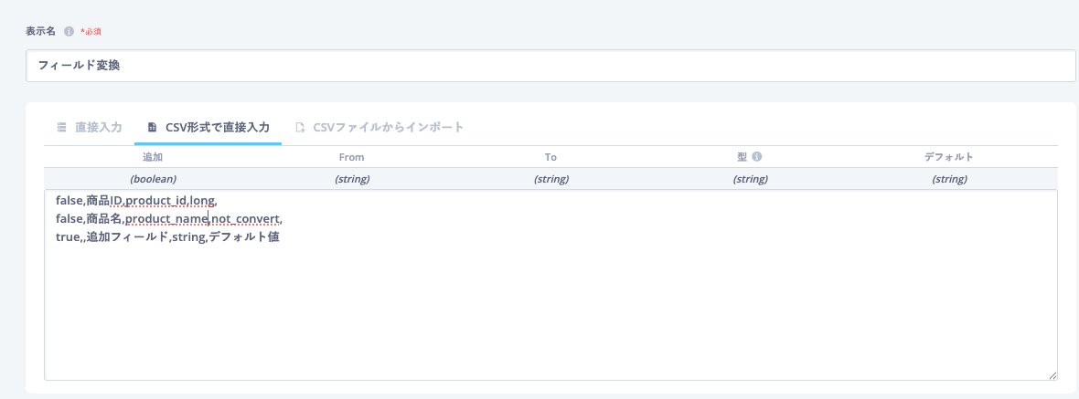 フィールド変換にテキスト形式、CSVファイルで設定できるモードを追加しました。