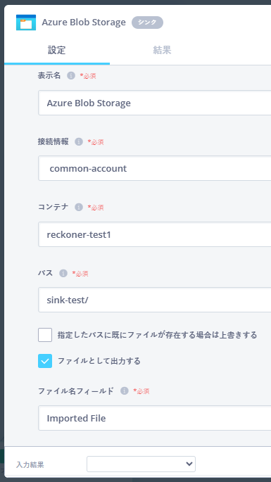 転送先(シンク)設定:指定したクラウドストレージのディレクトリに出力します。