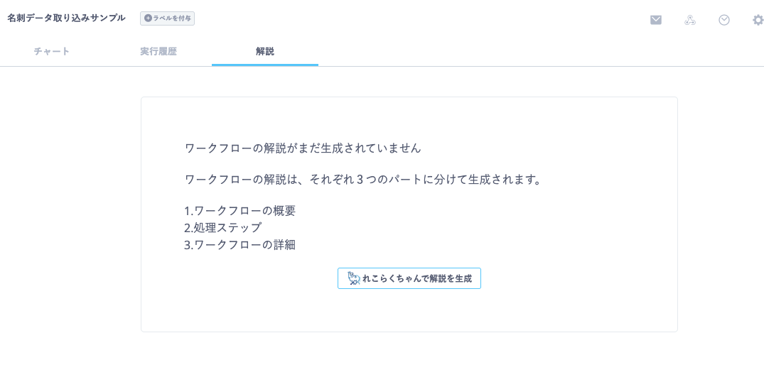 - 本機能の利用にあたり入力されたワークフロー情報や生成された解説内容は、生成AIの学習目的には利用されません。