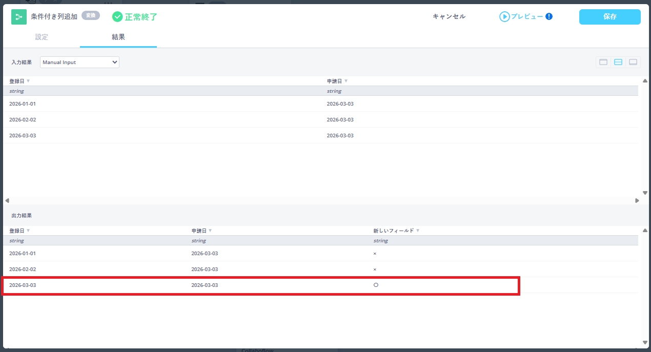 ・ 動作: 実行時、その入力欄に実際の「申請日」の値が代入されます。