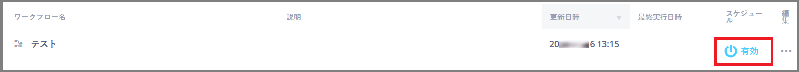 実行頻度・時間の設定内容に加え、一覧画面で「有効」と表示されているかをご確認ください。