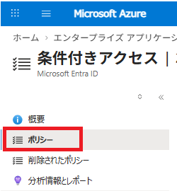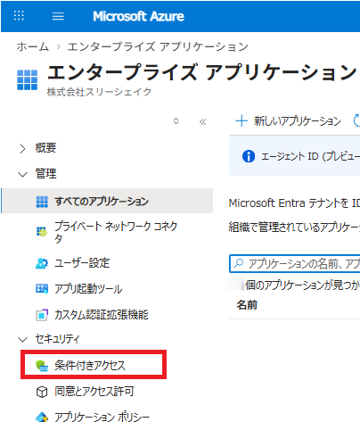 [エンタープライズ アプリケーション] のトップページへ戻り、左メニューから [セキュリティ] > [条件付きアクセス] を選択します。