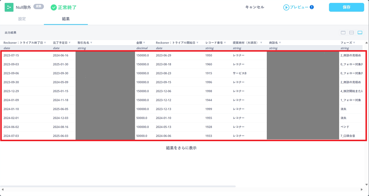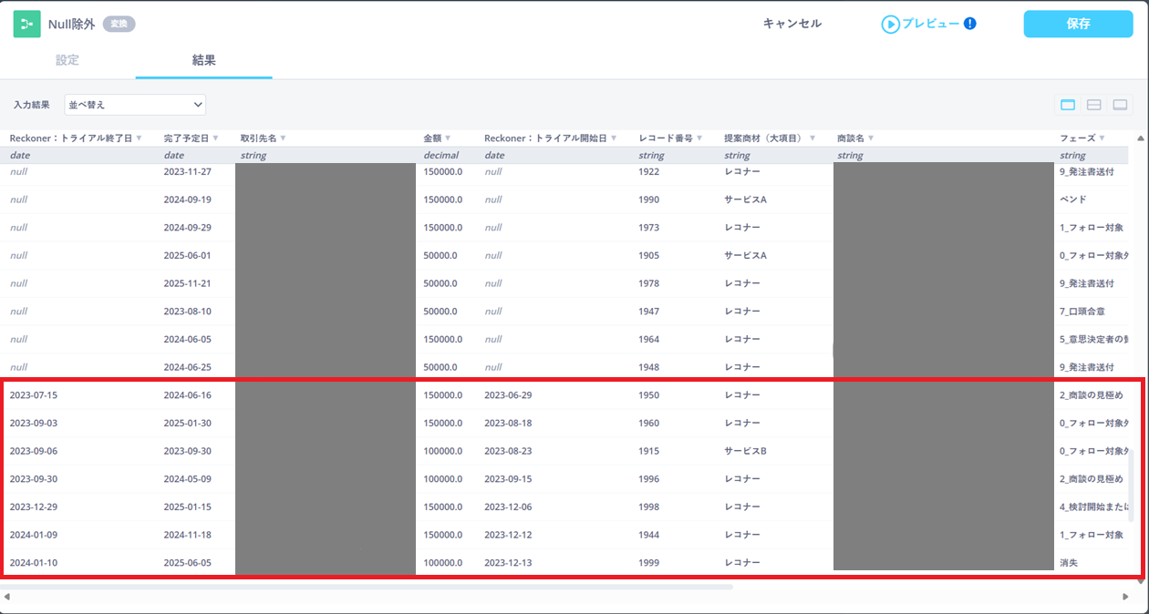 「Null除外」では、指定したフィールドにデータが存在するレコードを抽出します。