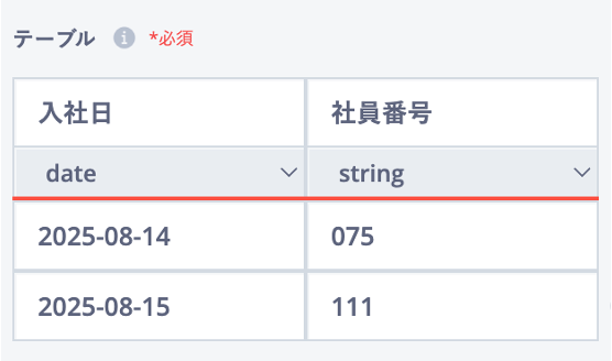 | フィールド名 | 必須 | フィルタリングの対象にするフィールド名を入力 |