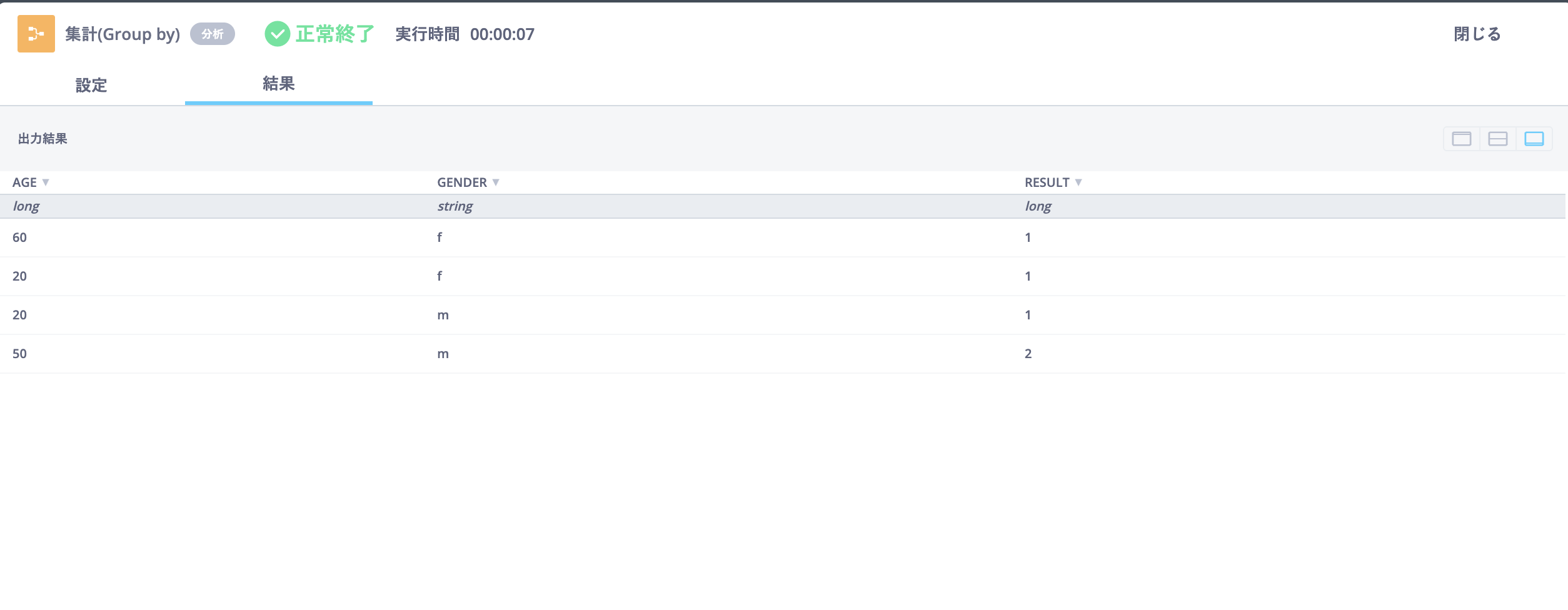 「集計(Group by)」では、指定したフィールドの値を基準にデータをグループ化して集計します。