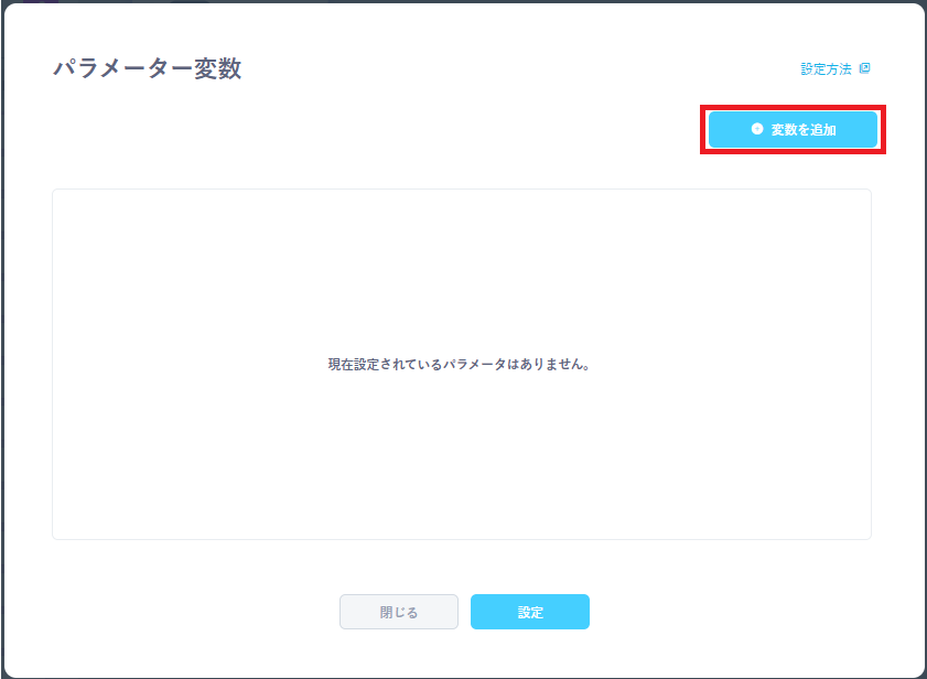 3.任意の変数名と値(または関数)を入力し、設定ボタンをクリックします